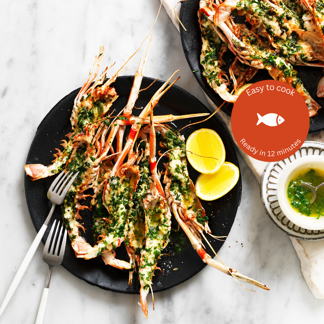 Jarryd Watts2023-07-26T00:45:45+00:00Serves 2 for a main meal or 4 was an entree 8 extra-large scampi, ask our fishmongers to cut them in half 100g butter 5 garlic cloves, finely chopped 1/3 cup flat-leaf parsley, finely chopped 1 tbsp finely chopped dill leaves Sea salt flakes and freshly ground black pepper Lemon cheeks, to serve Preheat [...]
